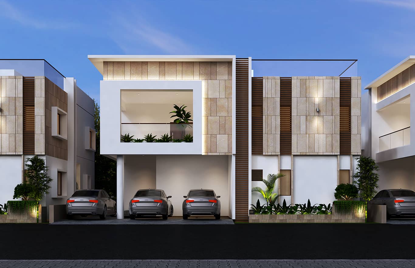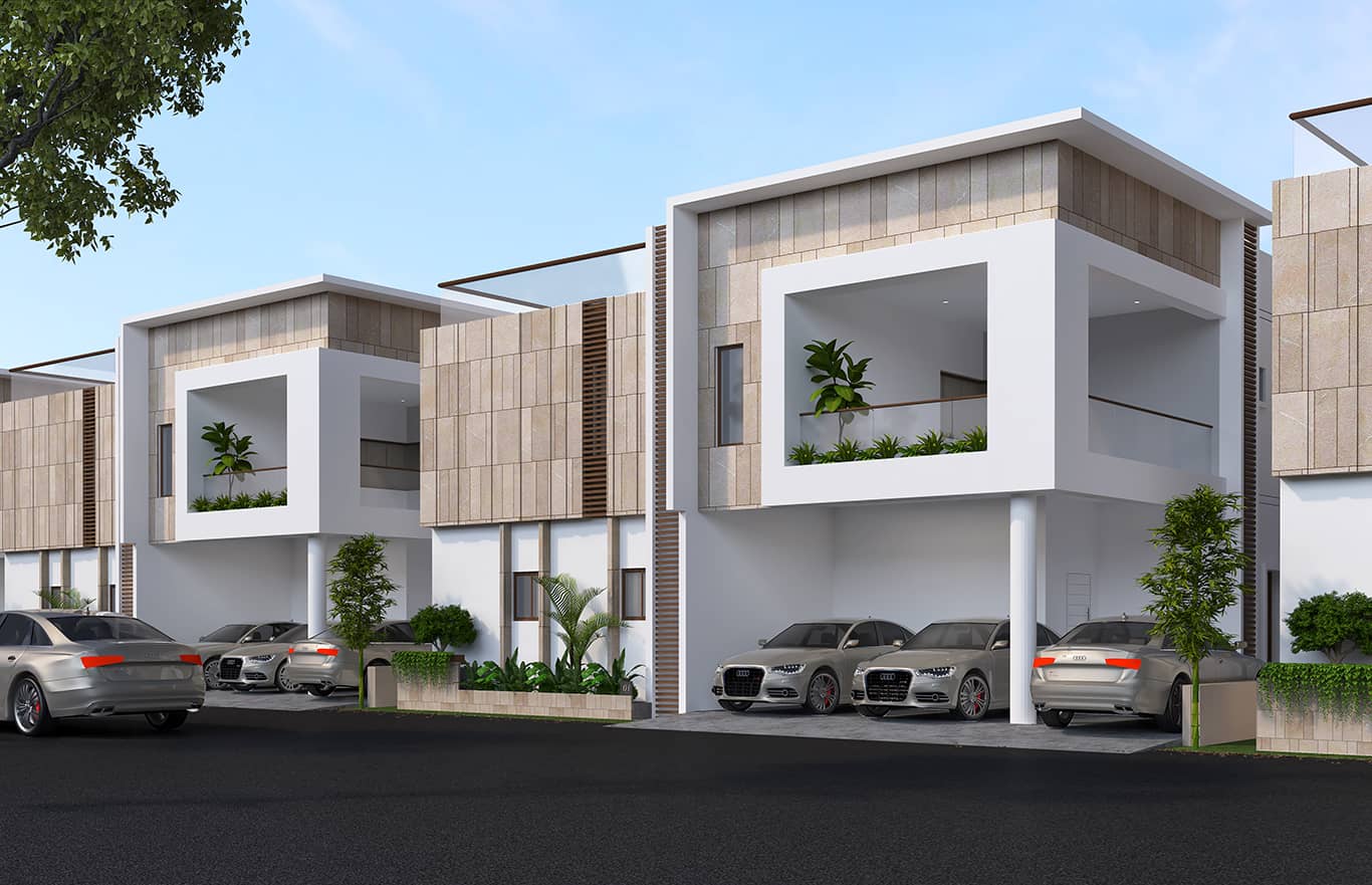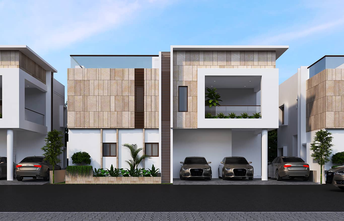 Each villa includes two covered parking spaces, along with one additional open car parking spot.