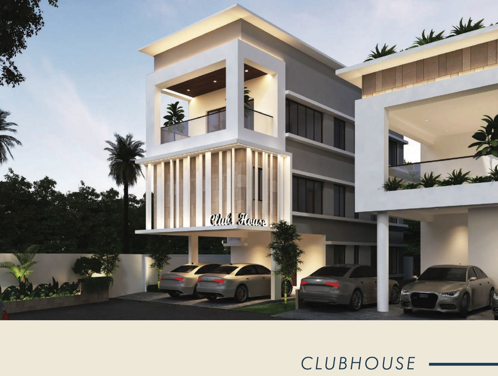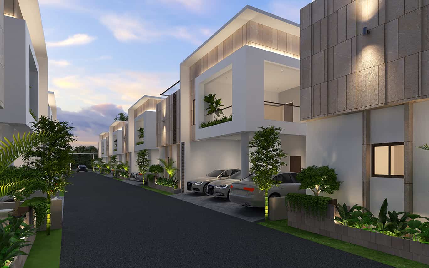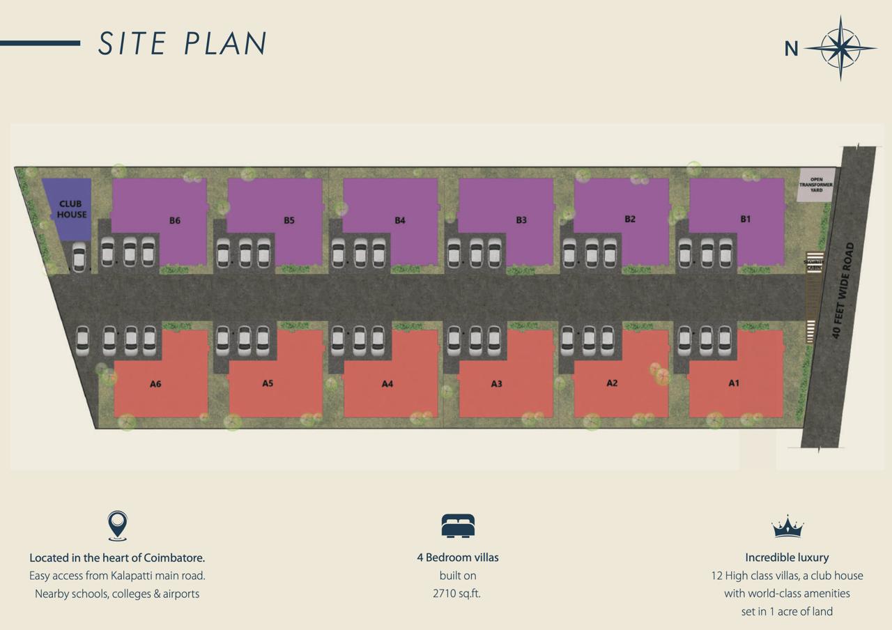 Each villa includes two covered parking spaces, along with one additional open car parking spot.